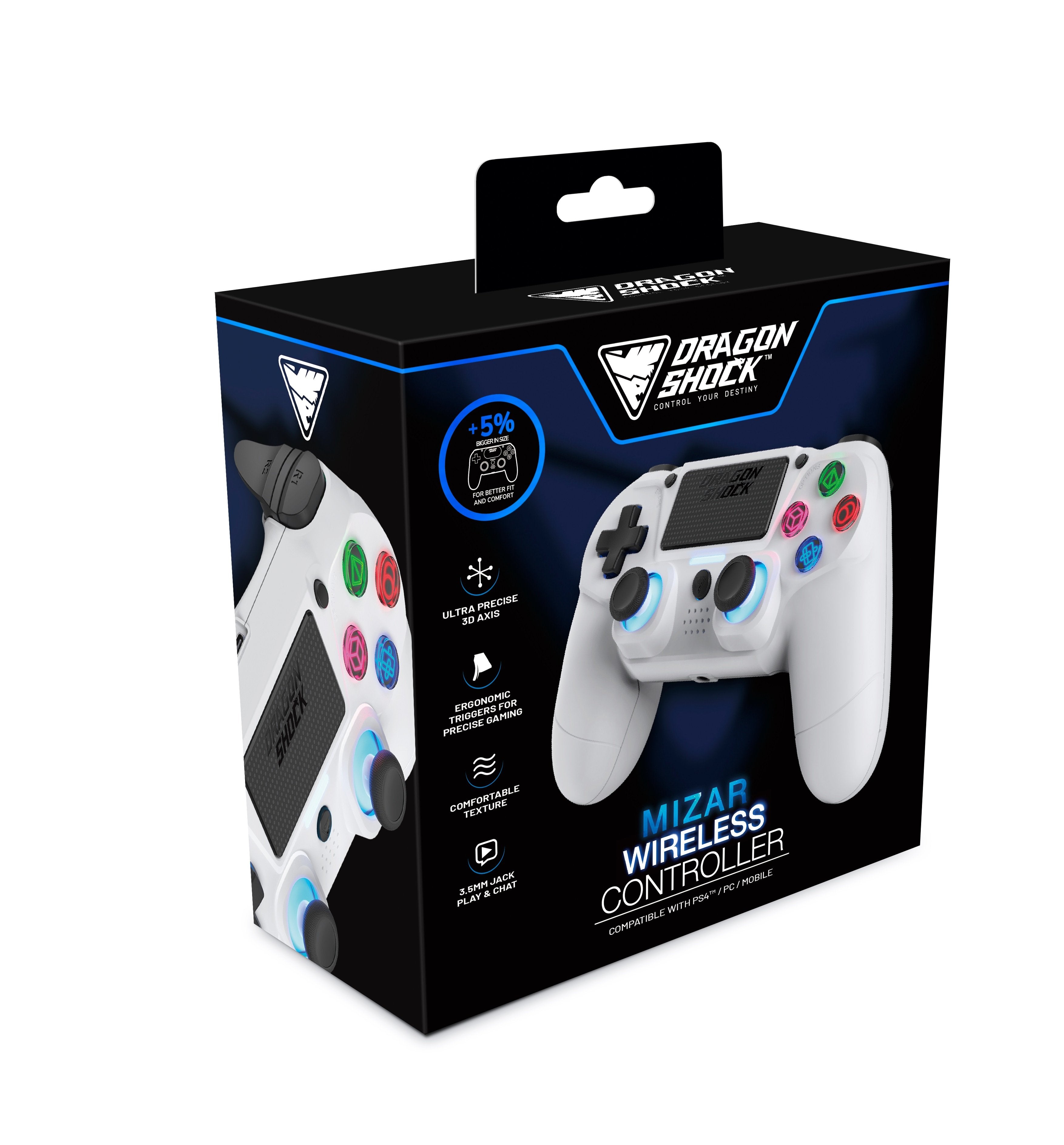 DragonShock - Manette sans fil Bluetooth MIZAR Blanche pour PS4, PC et Mobile