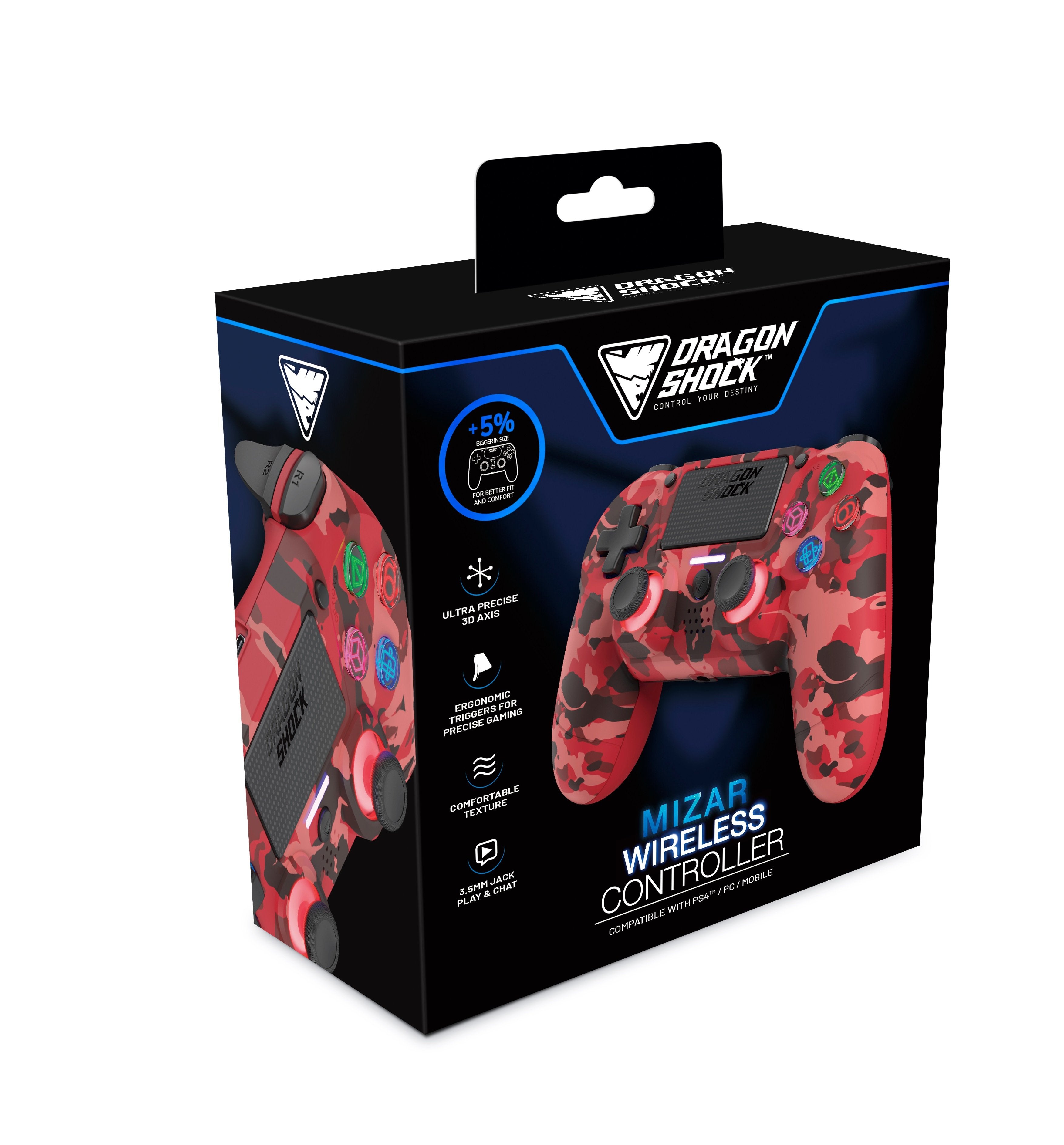 DragonShock - MIZAR BT - Manette sans fil Rouge Camouflage pour PS4, PC et Mobile
