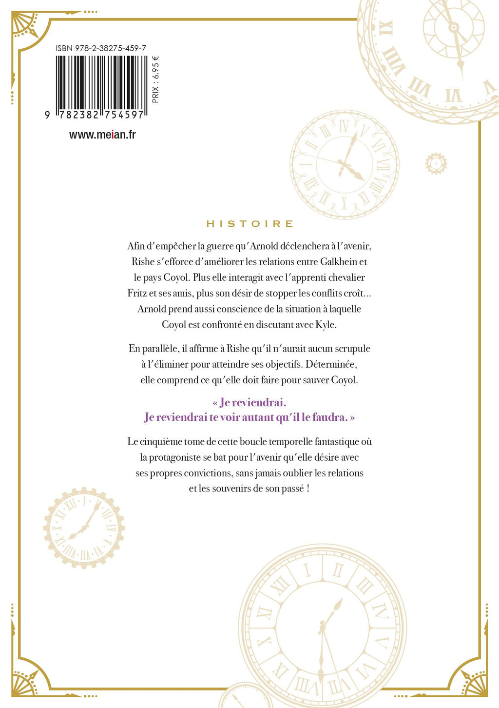 " Je reviendrai. Je reviendrai te voir autant qu'il le faudra. " Le cinquième tome de cette boucle temporelle fantastique où la protagoniste se bat pour l'avenir qu'elle désire avec ses propres convictions, sans jamais oublier les relations et les souvenirs de son passé !
