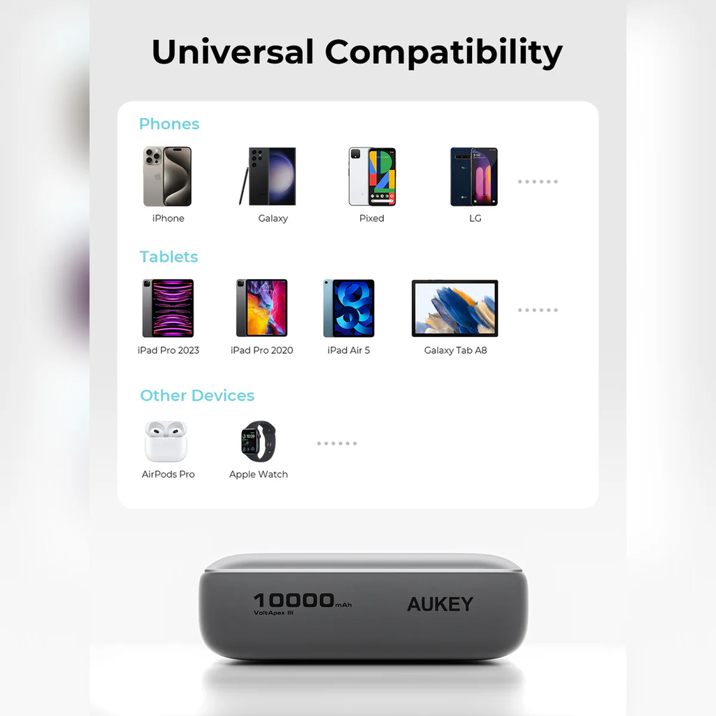 - Grande capacité : malgré sa taille compacte, ce powerbank dispose d'une capacité impressionnante de 10000 mAh qui vous permet de recharger plusieurs fois la plupart des smartphones avant de devoir recharger le powerbank lui-même.