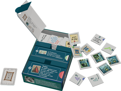 Chacun des trois tableaux de la boîte se compose de 54 à 70 tuiles qu’il convient d’assembler correctement en utilisant son sens de l’observation et sa logique. Regardez les éléments en détail, faites le lien entre les phrases et les mots, et composez ce qui vous semble être le tableau complet et en ordre. Si vous avez des difficultés, utilisez les cartes Indice. Ensuite, retournez toutes les tuiles. Si ce faisant vous obtenez une superbe image sans défaut, vous avez accompli votre mission !