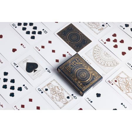 Le jeu de cartes Bicycle®Cypher est inspiré des mystérieux symboles et cryptographies utilisées par d’historiques sociétés secrètes. Les faces et le dos des cartes contiennent un message crypté que les collectionneurs peuvent déchiffrer. Une clé de déchiffrage figure sur les cartes supplémentaires à l’intérieur du paquet. Ce jeu de cartes somptueux inclut un paquet bleu marine sophistiqué, à l’intérieur duquel est imprimé un motif élégant représentant une clé. Les lignes riches en détails à l’extérieur du paquet sont dorées à chaud et mises en valeur par un gaufrage.