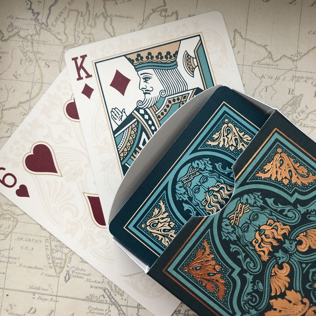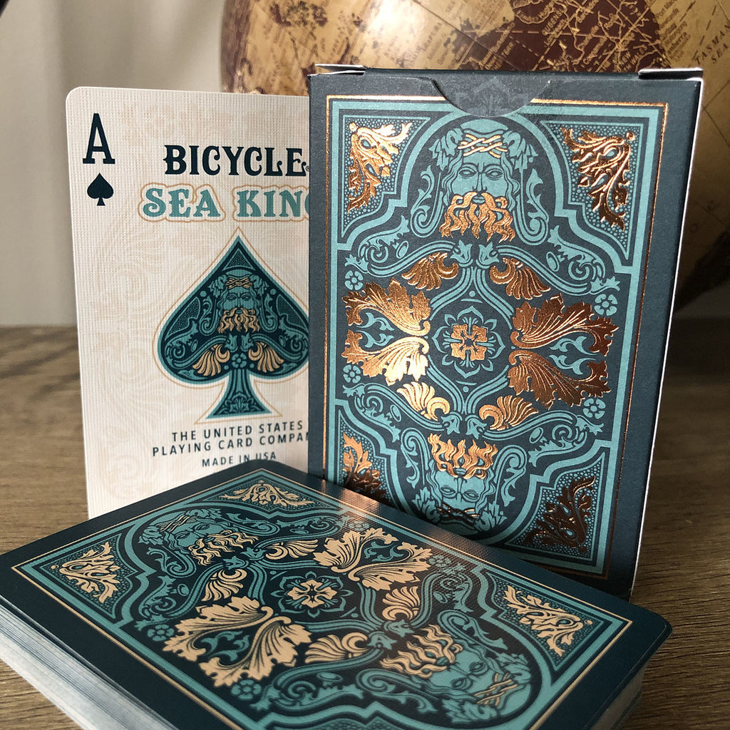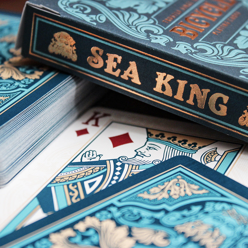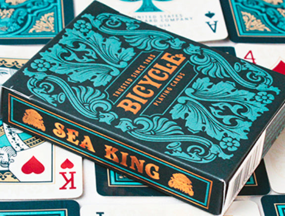 Grâce aux cartes Bicycle Sea King, vous ferez sensation lors de votre prochaine partie de cartes ! Proposez une partie à vos amis et découvrez des cartes très détaillées aux magnifiques tons bleu sarcelle ainsi qu’un paquet animé d’un film et d’un gaufrage dignes d’un roi !