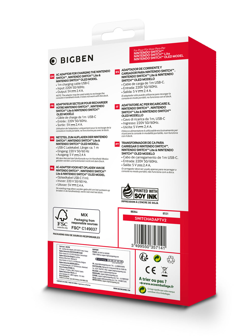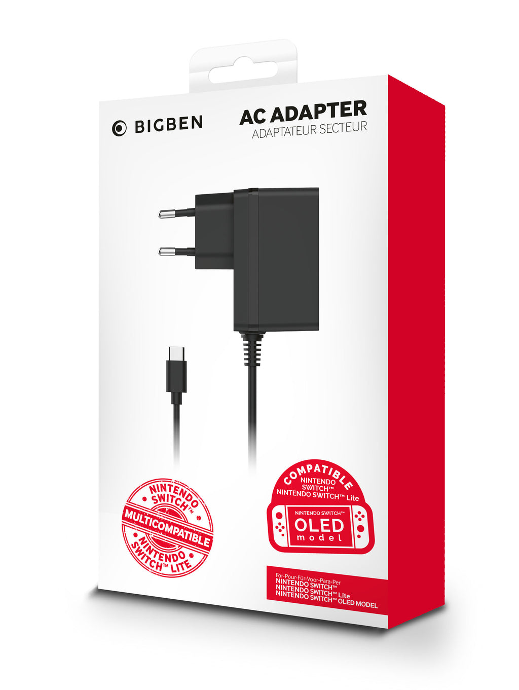Adaptateur secteur avec câble de recharge pour Switch, 2.1A.