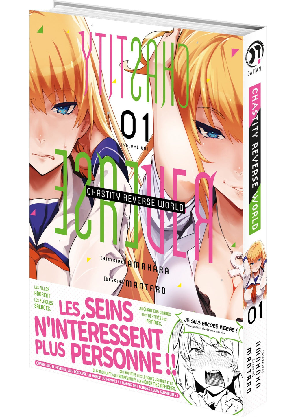 Les seins n'intéressent plus personne !! Des hommes aux longues jambes et en slip moulant sont représentés sur d'énormes affiches ! Basée sur le hentai Chasteté inversée, publié en France chez Hot Manga, Chastity Reverse World en reprend le principe sur un ton beaucoup plus humoristique tout en interrogeant le rapport entre les genres. Certaines situations nous paraîtraient-elles encore normales si nous intervertissions les rôles ? Les mésaventures vécues par Ichikawa peuvent paraître ridicules, voir même invraisemblables, et c'est justement là que se situe la substance même de Chastity Reverse World...