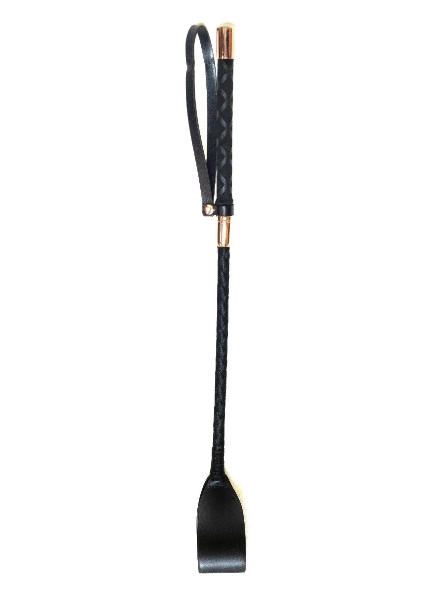 La cravache noire et dorée en similicuir de la gamme Luxure By Dorcel est l'accessoire indispensable pour pimenter vos séances BDSM.
