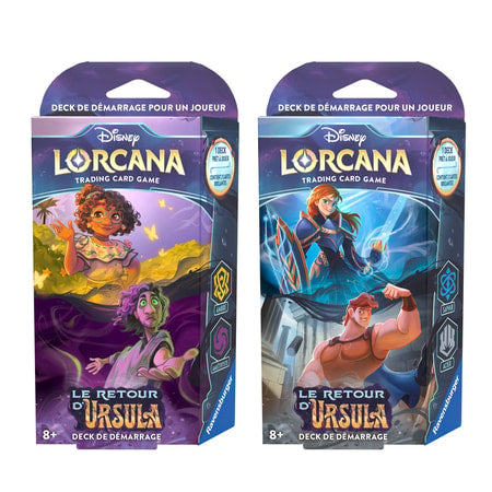Pour jouer à Disney Lorcana, chaque joueur a besoin d'un jeu de soixante cartes. Les decks de démarrage prêts à jouer contiennent un deck préconstruit avec une liste de cartes spécifiques. Si vous êtes novice en matière de jeux de cartes à collectionner, ou si vous souhaitez expérimenter le jeu avec un deck conçu et testé par l'équipe Lorcana, c'est un bon point de départ.