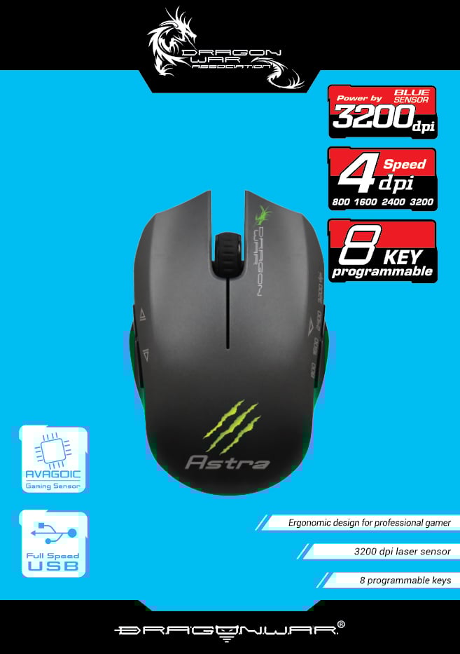 Dragonwar vous fait découvrir la souris Astra, un petit bijou de technologie qui comble toutes vos attentes, que vous l’utilisiez pour travailler, pour surfer ou pour jouer ! Vous serez séduit par sa légèreté, qui facilitera toutes les tâches que vous devez effectuer !