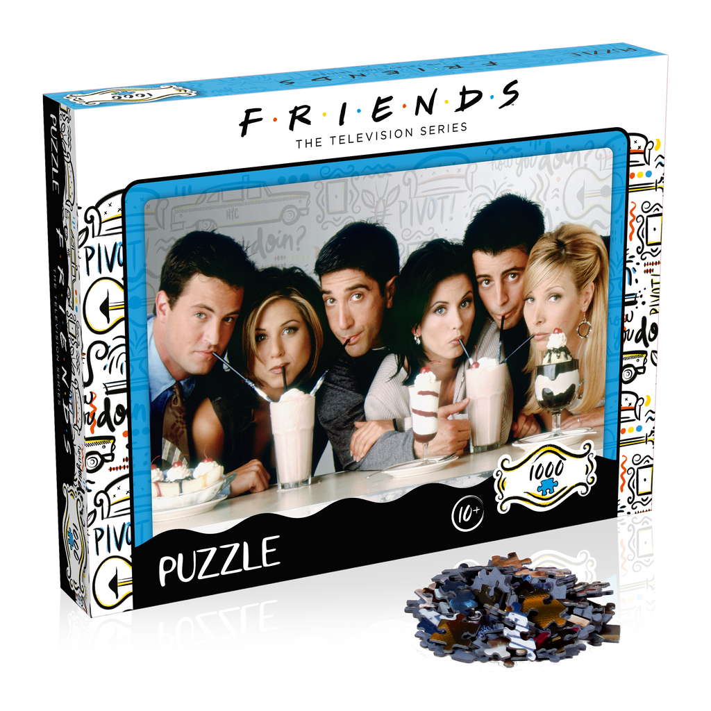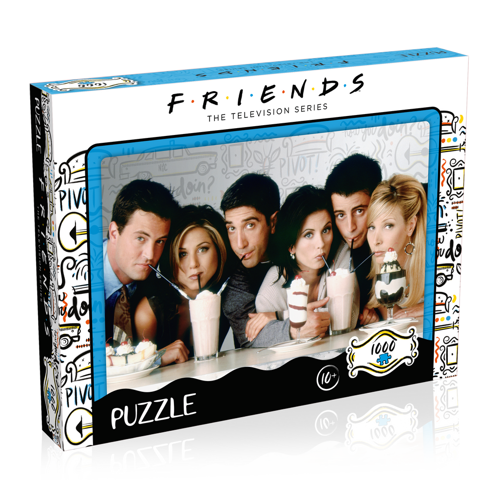 Redécouvrez la mythique série FRIENDS à travers ce puzzle de 1000 pièces représentant vos personnages préférés en train de siroter leurs milkshakes. Assemblez les visages de Joey, Chandler, Monica et les autres pour reconstituez l'image ! Contenu : 1 puzzle de 1000 pièces. A partir de 14 ans