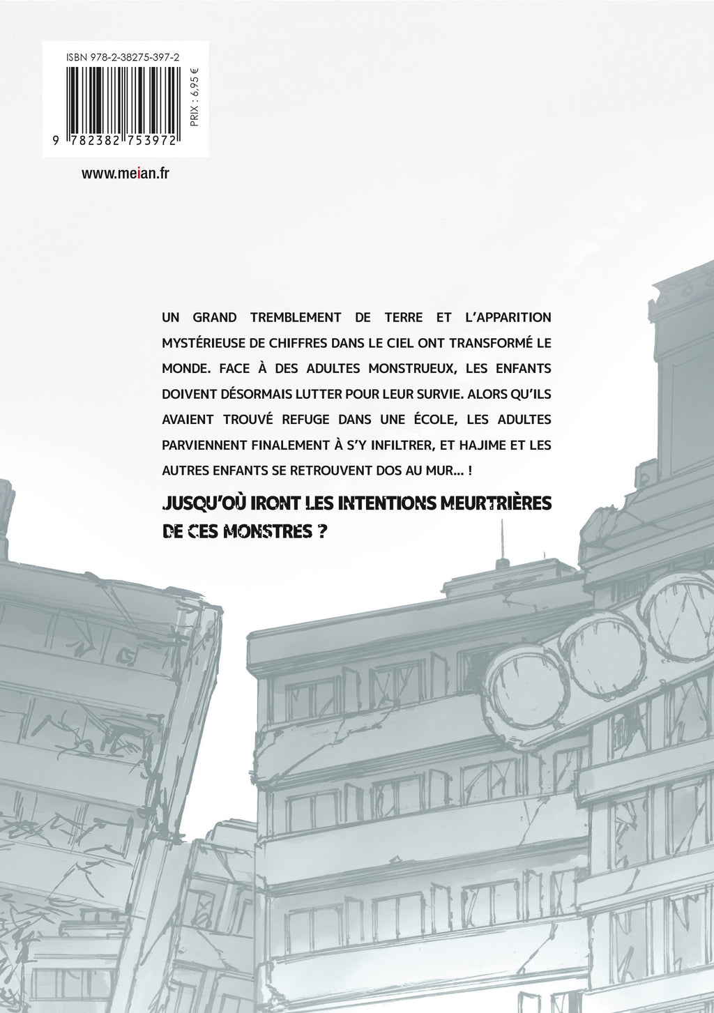 Un grand tremblement de terre et l'apparition mystérieuse de chiffres dans le ciel ont transformé le monde. Face à des adultes monstrueux, les enfants doivent désormais lutter pour leur survie. Alors qu'ils avaient trouvé refuge dans une école, les adultes parviennent finalement à s'y infiltrer, et Hajime et les autres enfants se retrouvent dos au mur... !