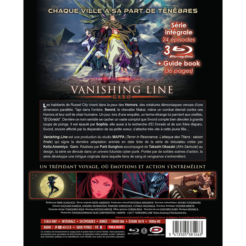 Vanishing Line est une production du studio MAPPA (Jujutsu Kaisen, Rage of Bahamut) qui signe la dernière adaptation animée en date tirée de la série de tokusatsu créée par Keita Amamiya : Garo. Réalisée par Seong Ho Park accompagné de Kiyoko Yoshimura (Last Exile Fam) au script et Takashi Okazaki (Afro Samurai) au design, la série se déroule dans un univers futuriste cyber punk. Portée par de solides scènes d'action, la série développe une intrigue originale dans laquelle liens de sang et vengeance s'entremêlent.