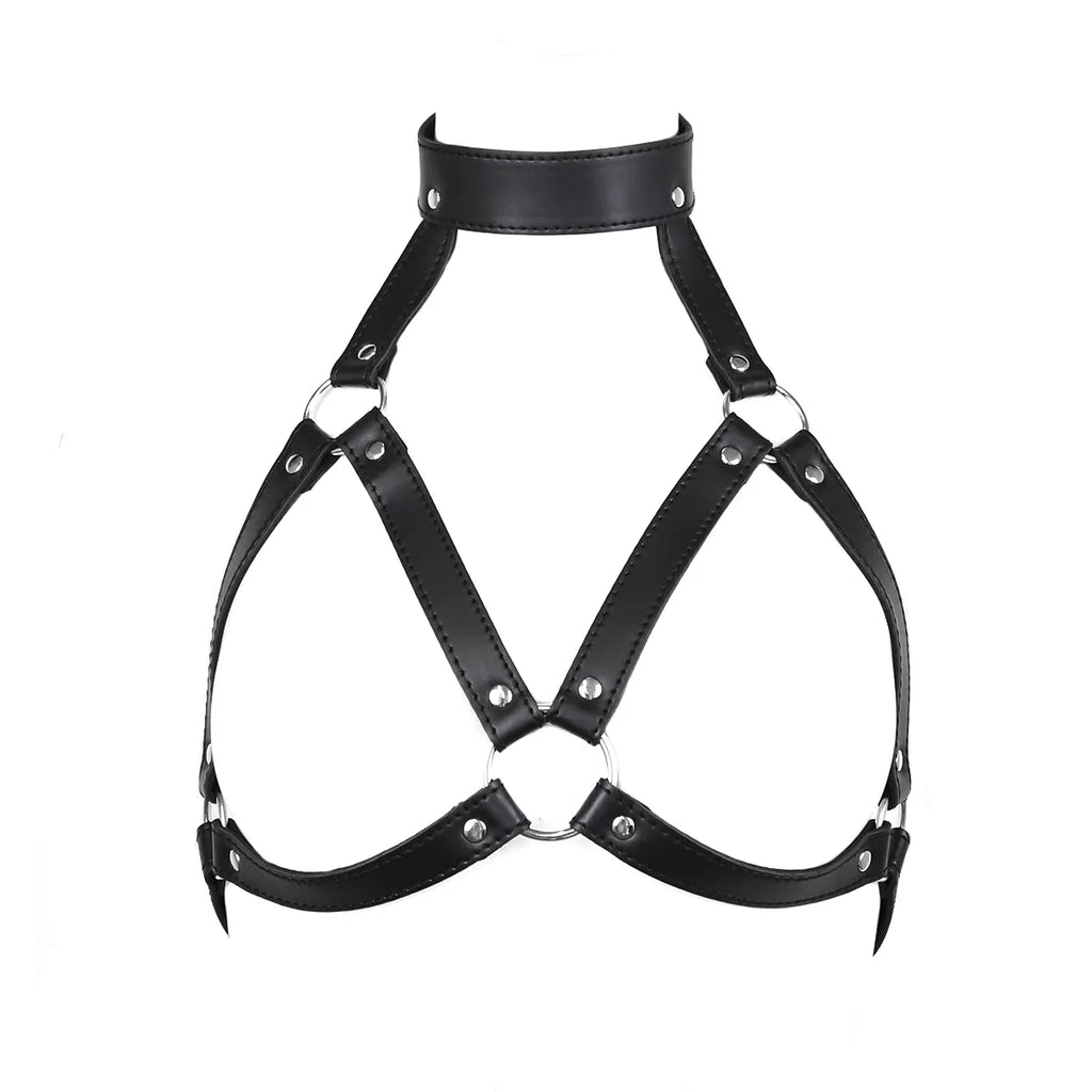 Un harnais similicuir noir pour laisser votre poitrine apparente