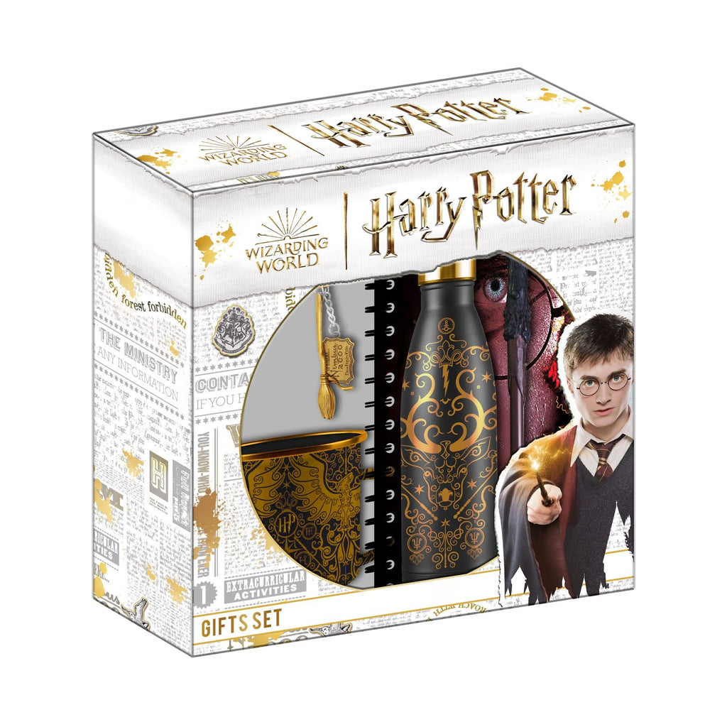Ce coffret cadeau Harry Potter contient tout ce dont vous avez besoin pour entrer dans le monde magique de Poudlard. Ce cadeau est composé d'une bouteille en verre, d'un mug, d'un carnet, d'un stylo-bille et d'un porte-clés. Ces produits sont assortis de couleurs spécifiques et imprimés de logos et motifs Harry Potter.