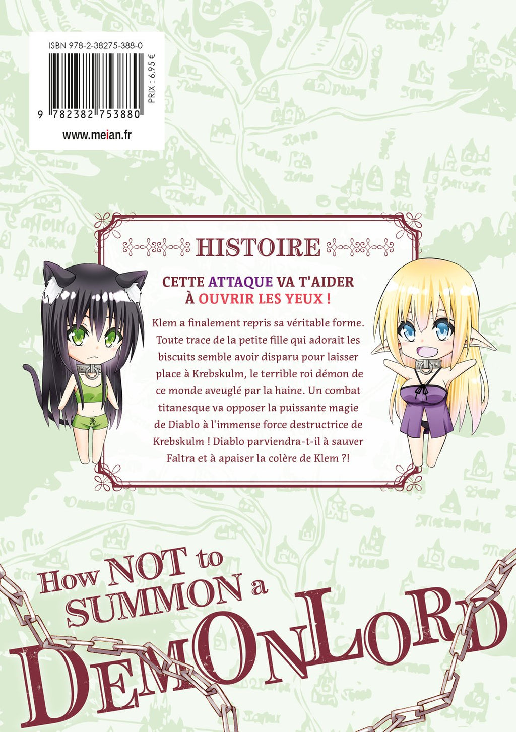 Klem a finalement repris sa véritable forme. Toute trace de la petite fille qui adorait les biscuits semble avoir disparu pour laisser place à Krebskulm, le terrible roi démon de ce monde aveuglé par la haine. Un combat titanesque va opposer la puissante magie de Diablo à l'immense force destructrice de Krebskulm ! Diablo parviendra-t-il à sauver Faltra et à apaiser la colère de Klem ?!