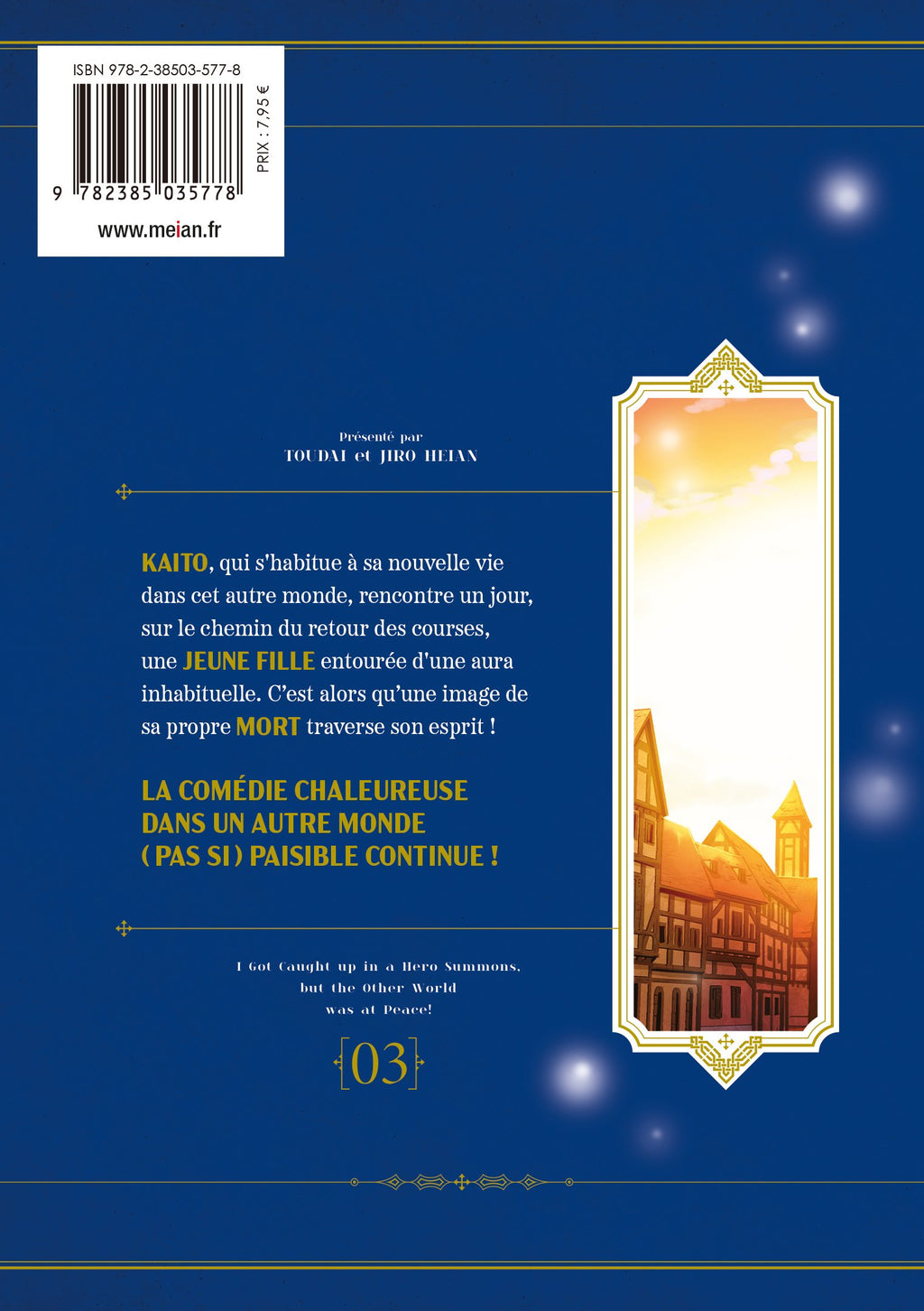 une jeune fille entourée d'une aura inhabituelle. C'est alors qu'une image de sa propre mort traverse son esprit ! La comédie chaleureuse dans un autre monde (pas si) paisible continue !