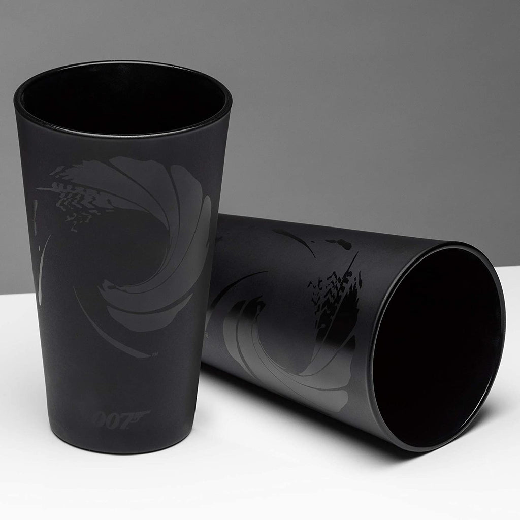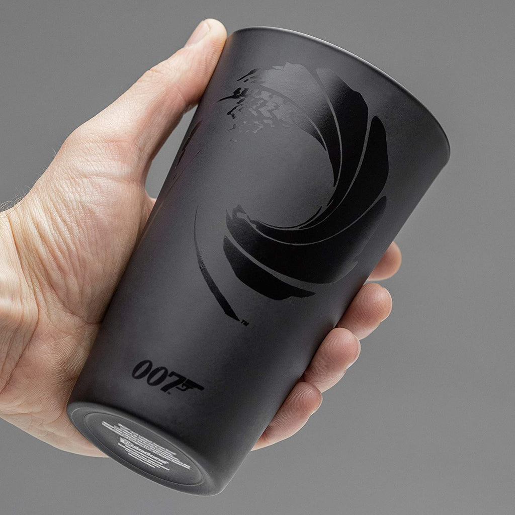Un verre noir mat au design brillant reprenant le motif vectoriel emblématique du canon de pistolet de James Bond, ce verre de 450 ml est idéal pour toute occasion ou mission.