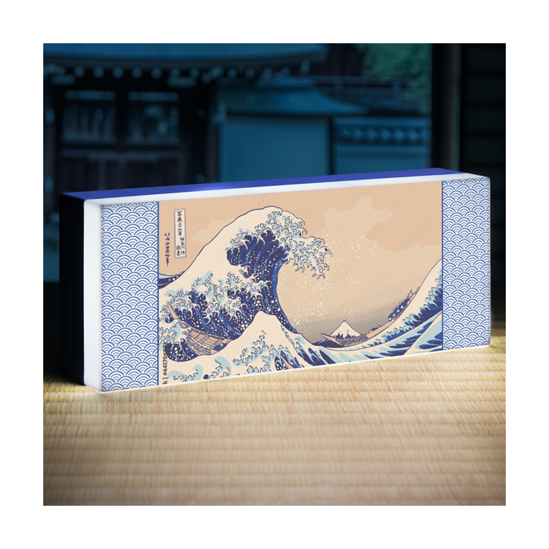La lampe "Japon - Lampe Vague Kanagawa" offre une ambiance moderne et élégante. La structure en bois poli et le diffuseur en plastique semi-transparent créent une lumière douce et diffuse. Elle a une taille appropriée pour être placée dans tout type d'espace, offrant une décoration unique.