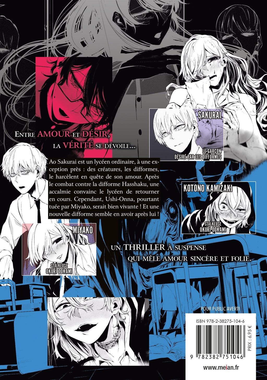 Ao Sakurai est un lycéen ordinaire, à une exception près : des créatures, les difformes, le harcèlent en quête de son amour. Après le combat contre la difforme Hasshaku, une accalmie convainc le lycéen de retourner en cours. Cependant, Ushi-Onna, pourtant tuée par Miyako, serait bien vivante ! Et une nouvelle difforme semble en avoir après lui ! Un thriller à suspense qui mêle amour sincère et folie.