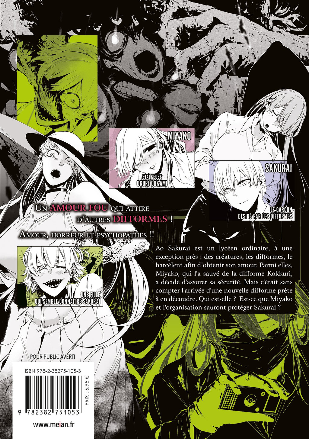 Ao Sakurai est un lycéen ordinaire, à une exception près : des créatures, les difformes, le harcèlent afin d'obtenir son amour. Parmi elles, Miyako, qui l'a sauvé de la difforme Kokkuri, a décidé d'assurer sa sécurité. Mais c'était sans compter l'arrivée d'une nouvelle difforme prête à en découdre. Qui est-elle ? Est-ce que Miyako et l'organisation sauront protéger Sakurai ?