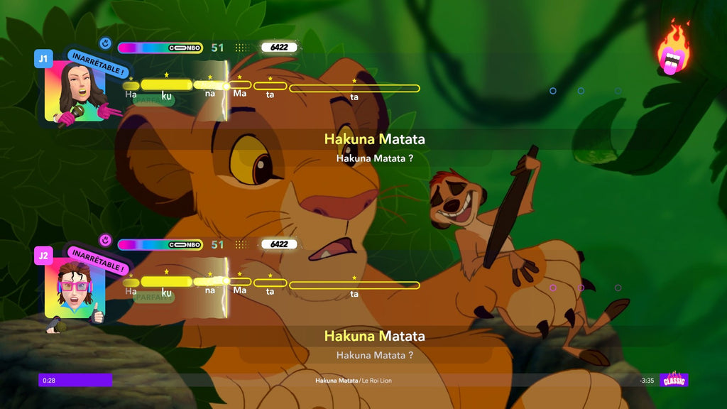 Le cœur de l'expérience Let's Sing : le mode solo "classique" et le mode multijoueur coopératif local "feat" pour 2 à 4 joueurs.