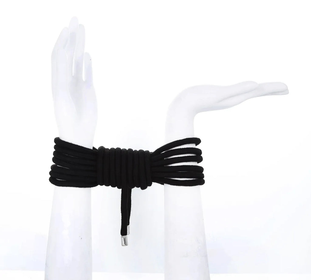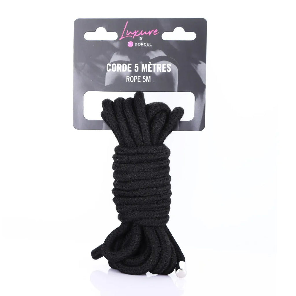 Initiez-vous à la pratique du Shibari, l'art du bondage japonais, grâce à la corde noire de 5 mètres de la gamme Luxure By Dorcel.