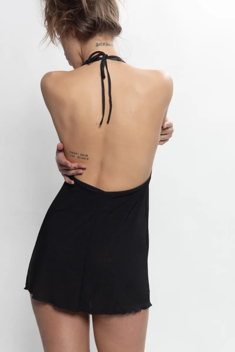 Cette robe est idéale pour briller lors de sorties nocturnes. Elle se noue dans le cou, permettant un ajustement parfait et un confort toute la soirée.
