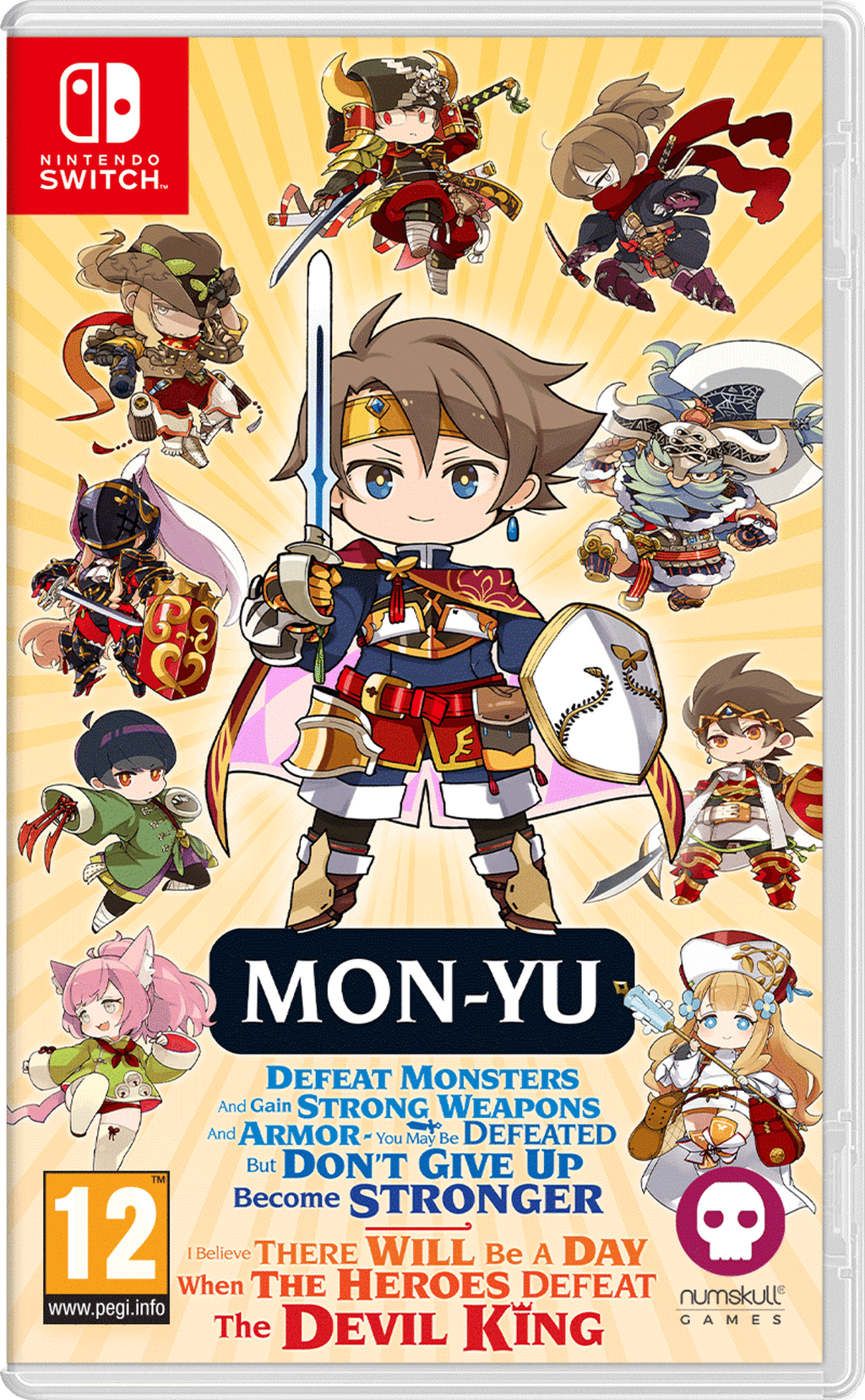 MON-YU: DEFEAT MONSTERS AND GAIN STRONG WEAPONS AND ARMOR. YOU MAY BE DEFEATED, BUT DON’T GIVE UP. BECOME STRONGER. I BELIEVE THERE WILL BE A DAY WHEN THE HEROES DEFEAT THE DEVIL KING