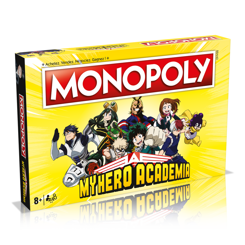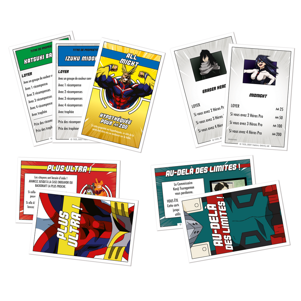 Constituez votre équipe de héros dans MONOPOLY® : My Hero Academia ! Parcourez le plateau en choisissant les meilleurs et les plus brillants de la classe 1-A, dont les élèves et les professeurs préférés des fans. Puisez dans les decks Go Beyond ! et Plus Ultra ! pour faire progresser votre équipe, mais veillez à éviter le Detention !
