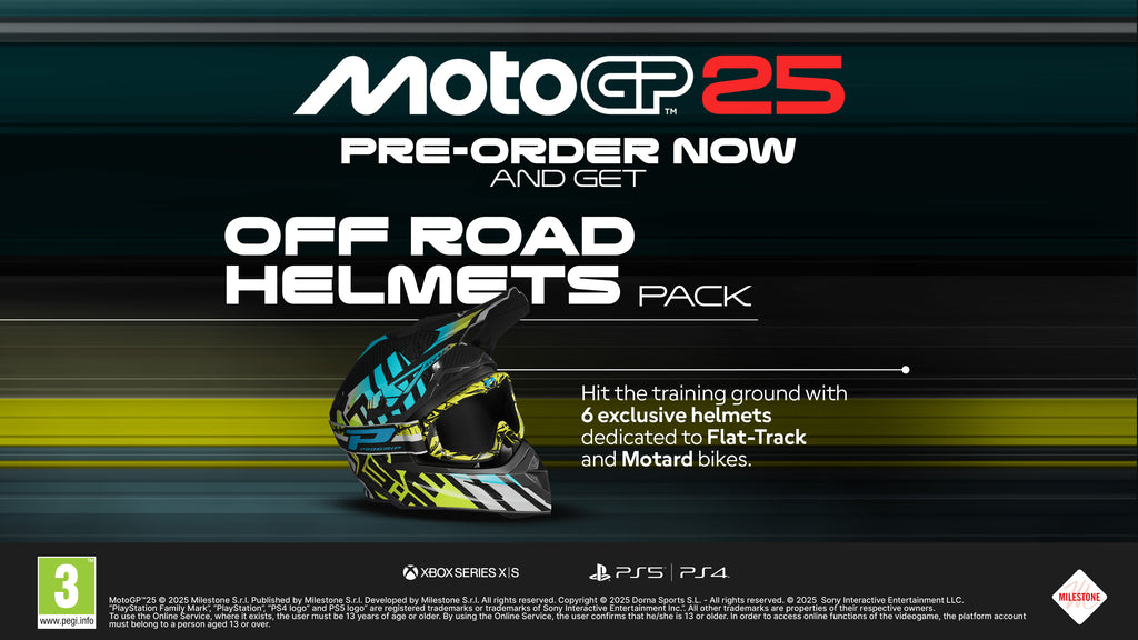 Inclut le MotoGP™25 - Off Road Helmets Pack et le MotoGP™25 - Iconic Liveries Pack.