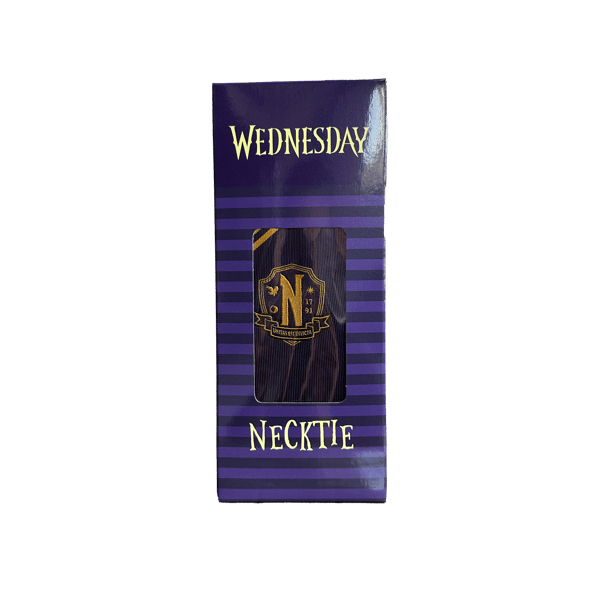 Netflix - Mercredi - Cravate - Nevermore nous offre un logo violet distinct qui se démarque par son design unique. Dotée d'une qualité haut de gamme, cette cravate saura apporter une touche subtile à votre look. Incontournable !