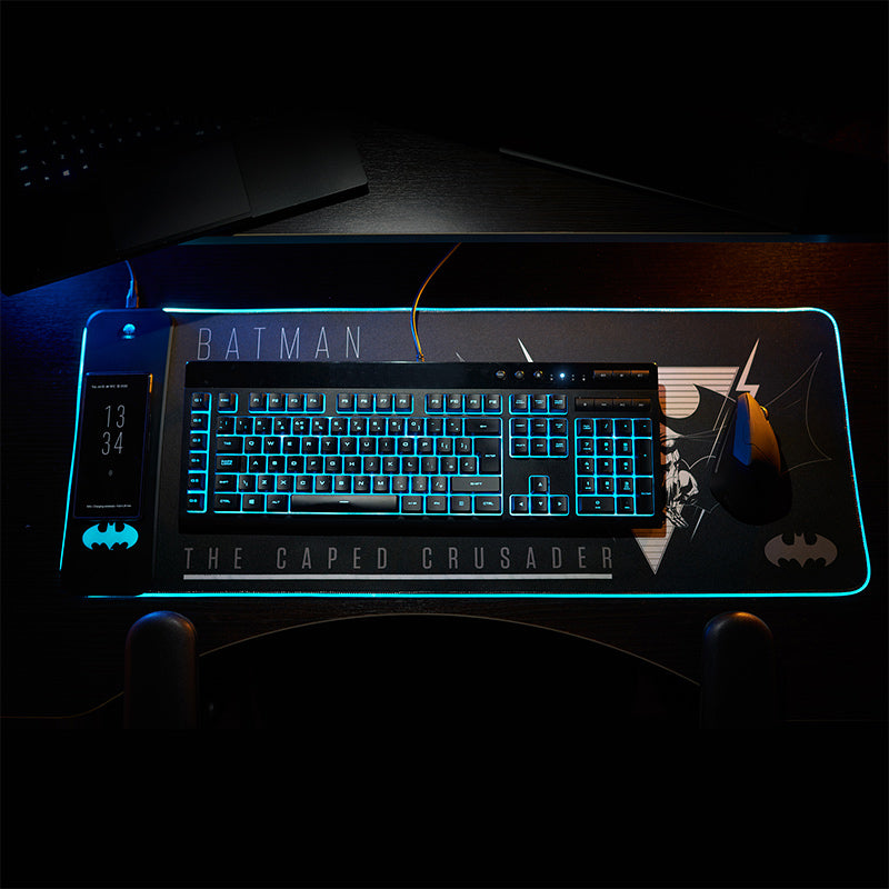 Tapis de jeu RGB à chargement sans fil, où la technologie de pointe rencontre un design emblématique. Doté d'une illustration exclusive et d'un éclairage RGB personnalisable, il offre les fonctionnalités dont vous avez besoin, tout en gardant votre téléphone chargé et prêt à l'emploi.