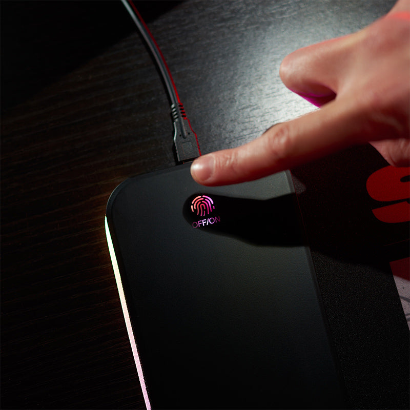 Tapis de jeu RGB à chargement sans fil, où la technologie de pointe rencontre un design emblématique. Doté d'une illustration exclusive et d'un éclairage RGB personnalisable, il offre les fonctionnalités dont vous avez besoin, tout en gardant votre téléphone chargé et prêt à l'emploi.