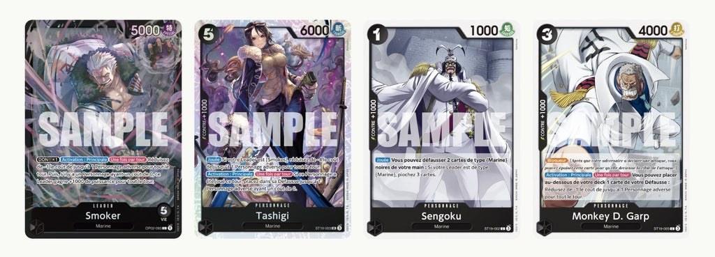 - Un deck pour débutant comprenant un grand nombre de cartes Personnage « Marine » !