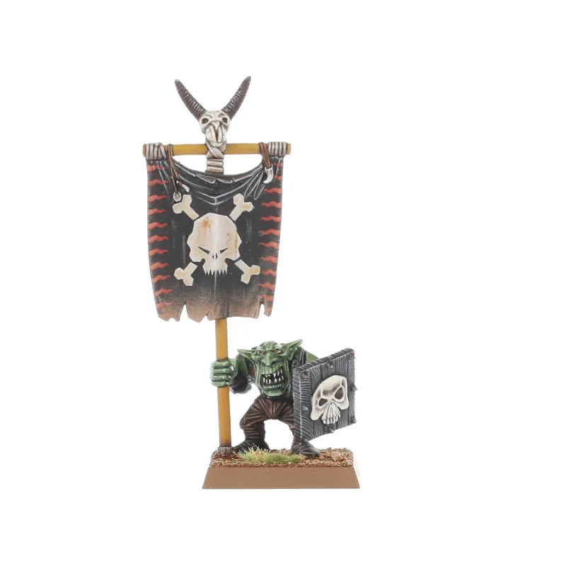 Ce kit en plastique permet d'assembler 40 Gobelins, une bande piaillante qui se rassemblent au sein des Tribus d'Orques & Gobelins. Chaque Gobelin peut être armé soit d'une lance et d'un bouclier rudimentaires, soit d'un arc court et d'un carquois de flèches. Ce kit fournit également toutes les améliorations d'état-major dont vous avez besoin, que vous souhaitiez déployer vos Gobelins en petits groupes ou en une énorme horde. Vous pourrez assembler des musiciens, des champions et des porte-étendards avec divers choix de bannières.