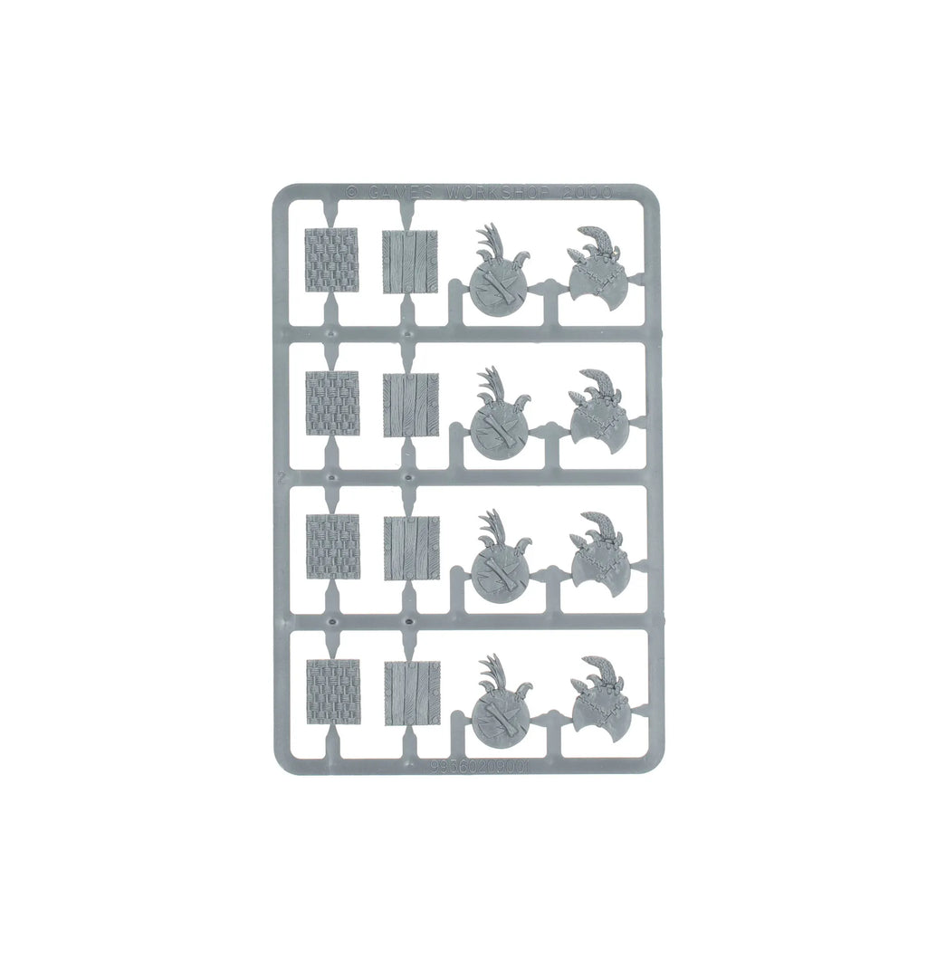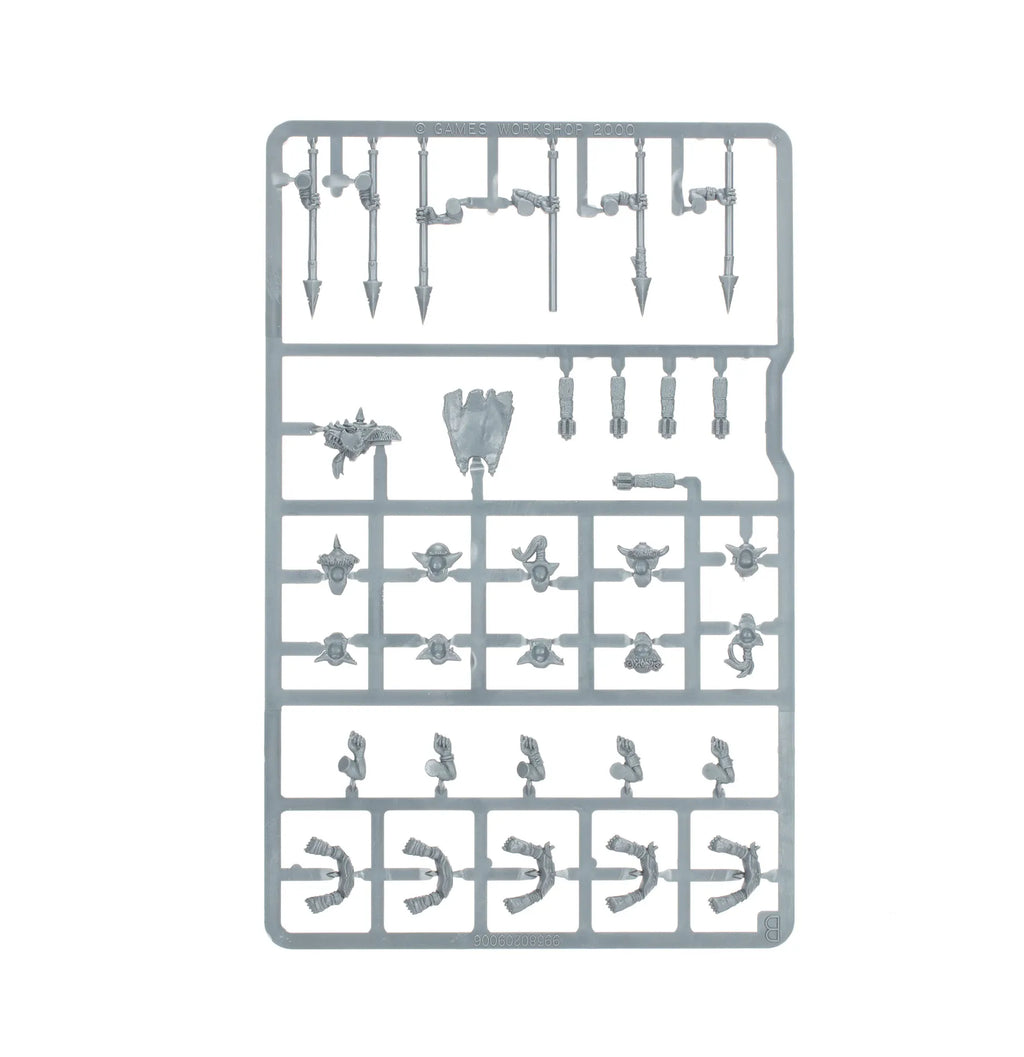 Ce kit contient divers styles de boucliers, de positions de jambes, de torses en justaucorps, de êtes grimaçantes, de carquois et de bras d'armes, tous étant interchangeables pour garantir la diversité des apparences quelle que soit la taille de votre horde.