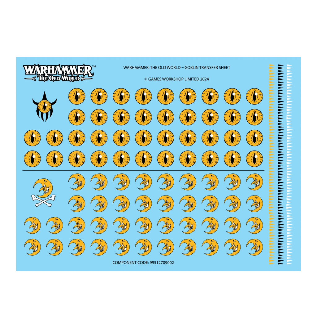 Ce kit est composé de 460 éléments en plastique et de 40x Socles Carrés Citadel de 25mm. Il contient également une Planche de Décalcos de Gobelins pour Warhammer: The Old World, proposant 84 décalcos de grande qualité pour décorer votre armée. Ces figurines sont fournies non peintes et nécessitent assemblage – nous recommandons d'employer la Colle Plastique Citadel et la peinture Citadel Colour.
