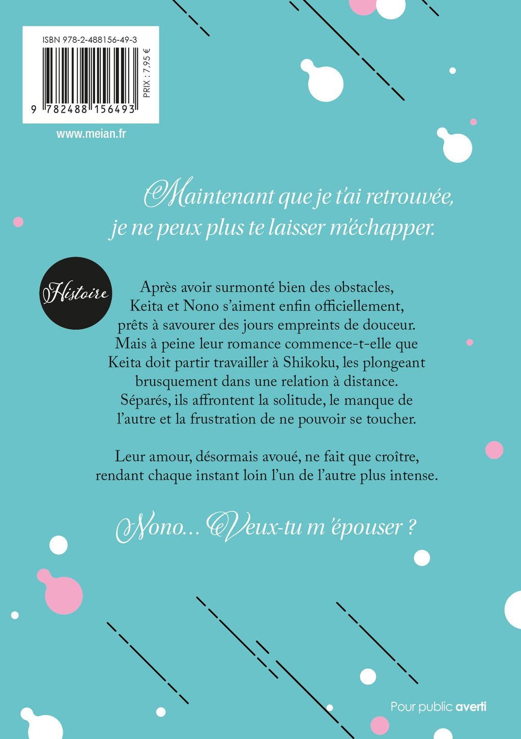 Après avoir surmonté bien des obstacles, Keita et Nono s'aiment enfin officiellement, prêts à savourer des jours empreints de douceur. Mais à peine leur romance commence-t-elle que Keita doit partir travailler à Shikoku, les plongeant brusquement dans une relation à distance. Séparés, ils affrontent la solitude, le manque de l'autre et la frustration de ne pouvoir se toucher.