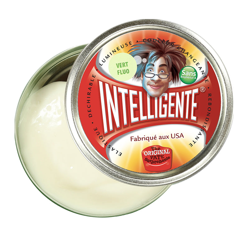 La pâte intelligente Vert Fluo est une pâte fluo tendre à malaxer. Cette pâte phosphorescente est ludique, attrayante et très malléable, la pâte intelligente est élastique, elle rebondit comme un ballon, se déchire comme du papier et peut même servir de balle anti-stress !