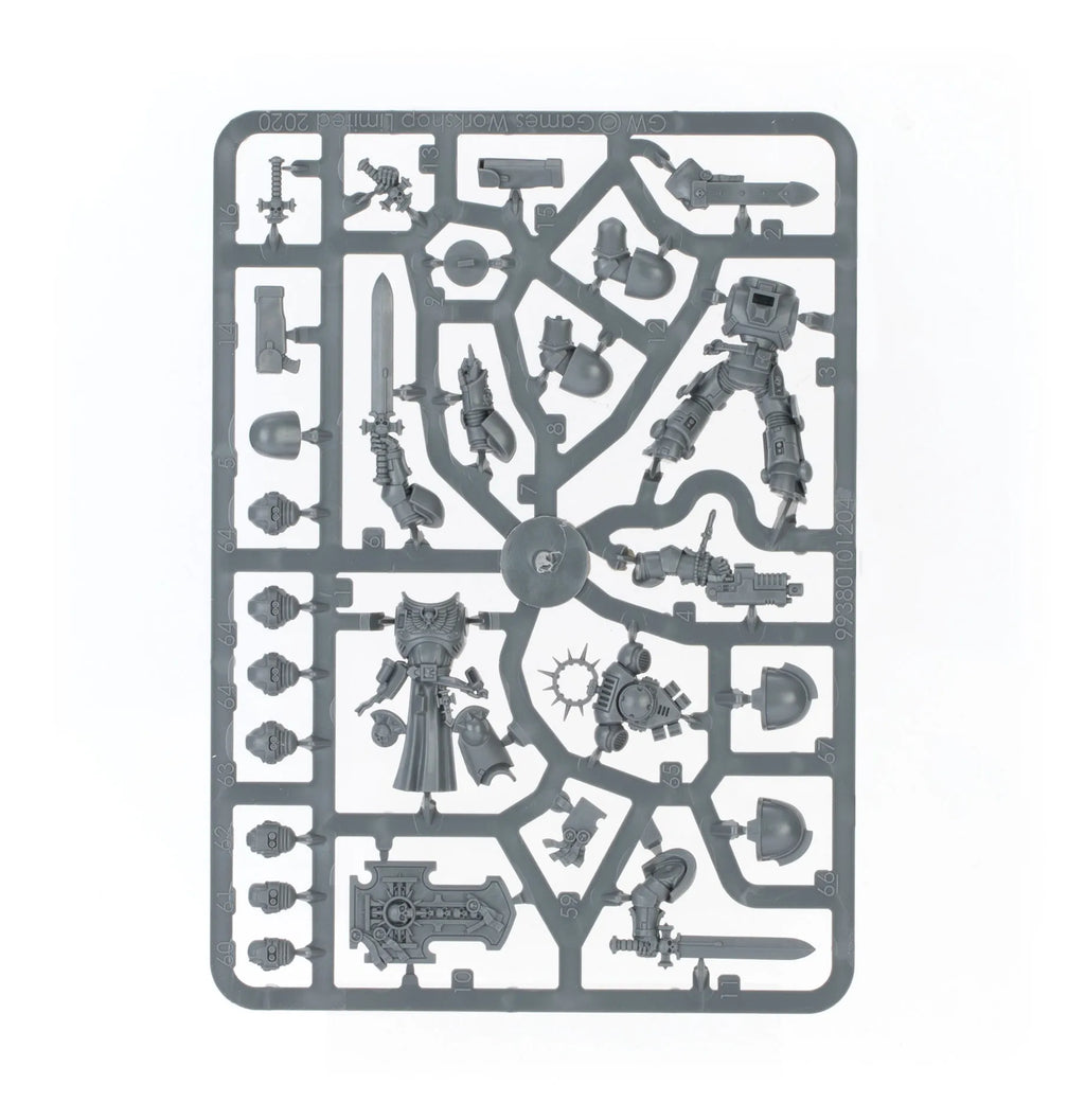 L'Escouade Crusader comprend quatre Novices équipés au choix d'armes à feu de Novices ou de pistolets bolters et d'épées tronçonneuses. Les six Initiés peuvent être armés d'un fusil bolter, ou d'un pistolet bolter lourd et d'une épée tronçonneuse. Deux Initiés peuvent être armés d'un pyro-éclateur, et deux d'un pistolet bolter lourd et d'un gantelet énergétique. Un des Initiés peut être assemblé comme un Frère d'Épée optionnel, doté d'une arme énergétique de maître et d'un pistolet bolter lourd ou d'un pyropistolet. Les têtes et les épaulières sont interchangeables entre les Initiés, et ils disposent aussi de sceaux de pureté, d'écussons et de reliques optionnels.