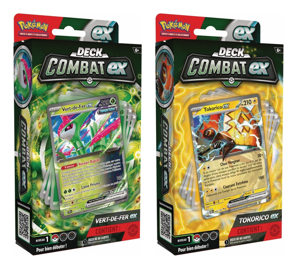 De puissants Pokémon-ex sont prêts à foncer sur le champ de bataille dans le nouveau Pokémon JCC Deck Combat-ex ! Chaque deck de 60 cartes est mené par un Pokémon-ex exceptionnel et comprend tout ce dont vous avez besoin pour jouer immédiatement. Que la bataille commence !
