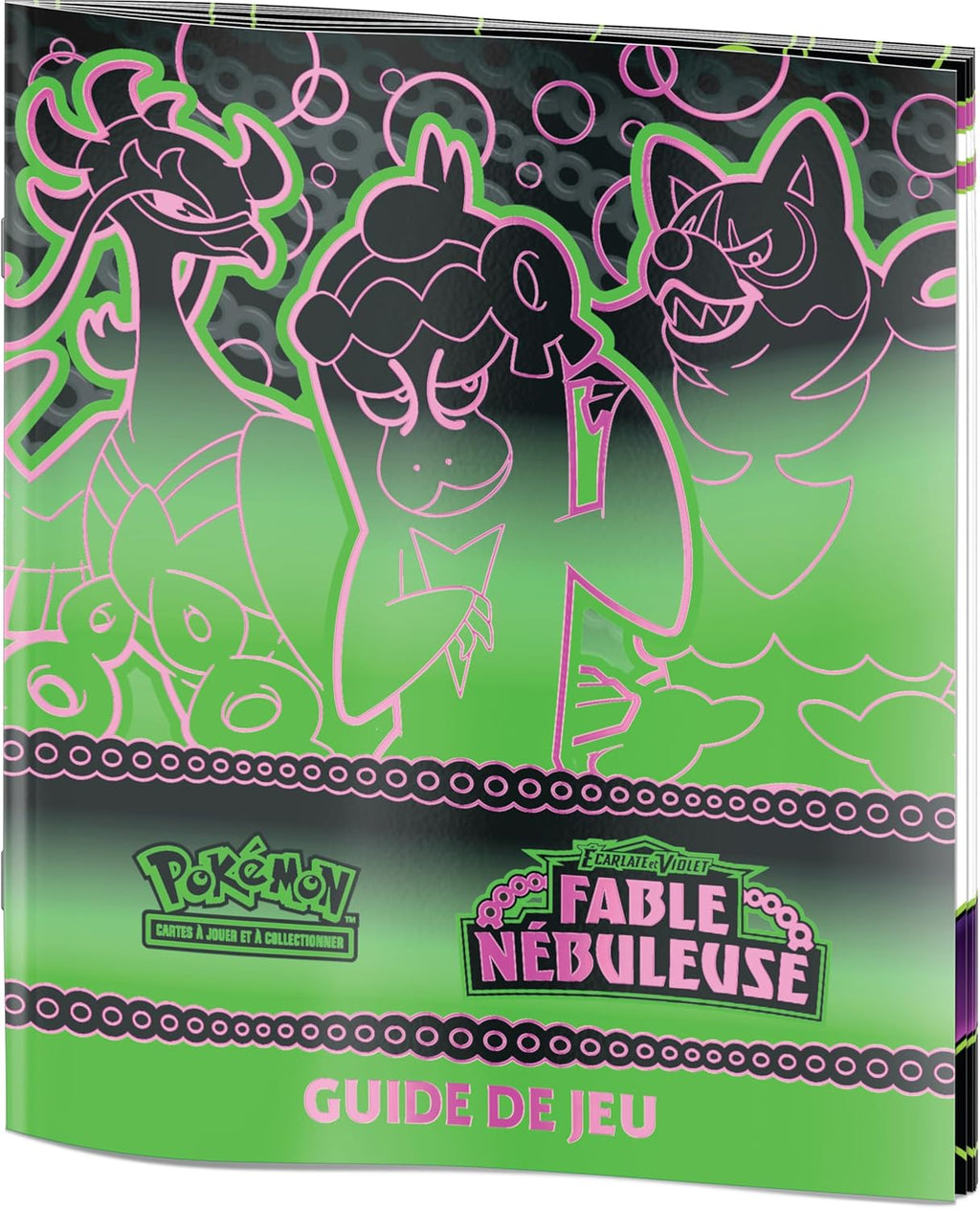 Le Coffret Dresseur d’élite Écarlate et Violet – Fable Nébuleuse contient 9 boosters Écarlate et Violet – Fable Nébuleuse, une carte promo « illustration rare » de Pêchaminus et divers accessoires de jeu.