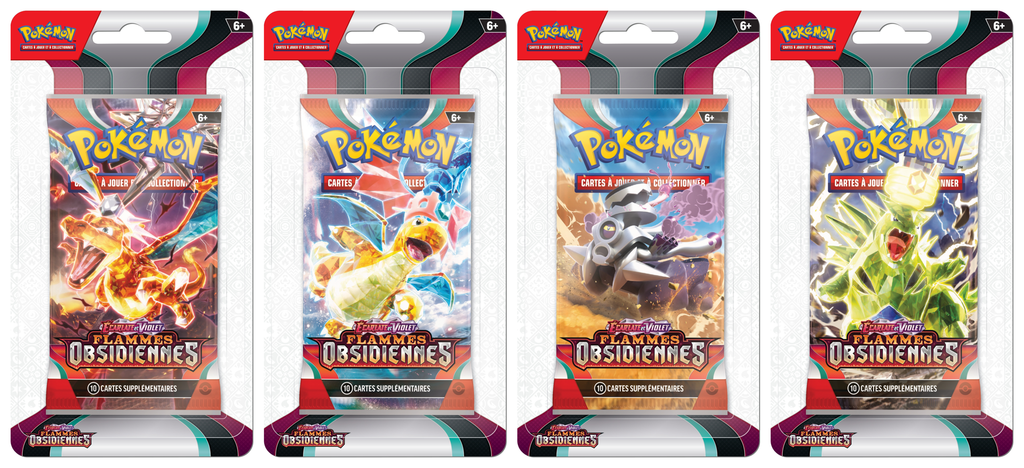 Des braises rougeoyantes illuminent la nuit noire et les étincelles s'enflamment pour former une véritable fournaise lorsque Dracaufeu-ex surgit des profondeurs obscures avec de nouveaux pouvoirs ! Le péhnomène brillant de Téracristallisation donne à certains Pokémon-ex, notamment à Tyranocif, Bekaglaçon et Apireine, un type différent du leur, alors que Dracolosse-ex et Rongrigou-ex prouvent la maîtrise de leur force intérieure. Vrombotor-ex, Melmetal-ex et d'autres Pokémon ne sont pas en reste et promettent de changer le cours des combats dans l'extension Écarlate et Violet - Flammes Obsidiennes.