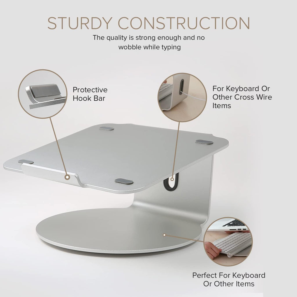 Stabilité - D'une part, le panneau en aluminium empêche votre ordinateur portable de bouger ou de vaciller pendant que vous tapez, que vous branchez des câbles ou que vous retirez des supports des ports USB. D'autre part, les pieds en caoutchouc antidérapants aident à maintenir votre ordinateur portable fermement en place. Ils empêchent également le support de glisser, de façon à protéger la surface de travail des rayures.