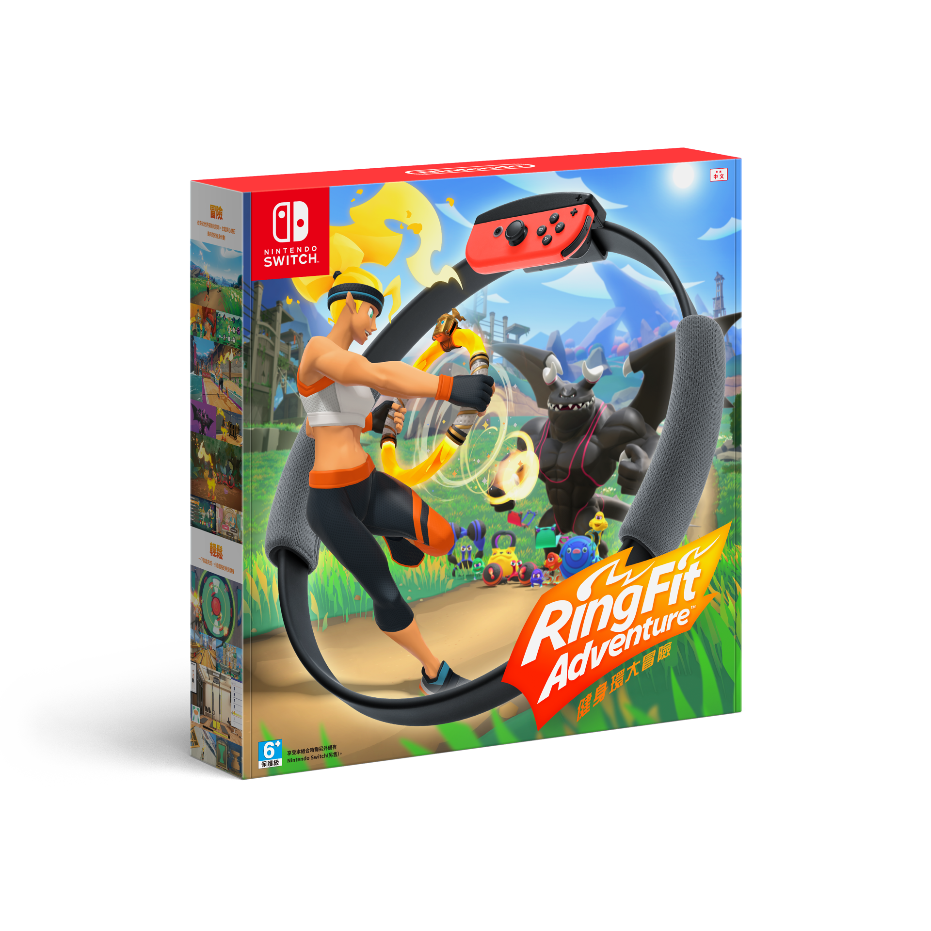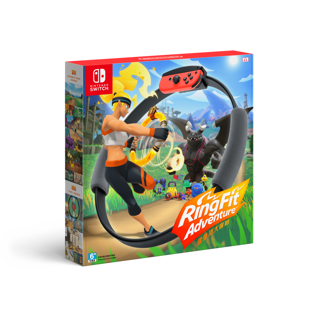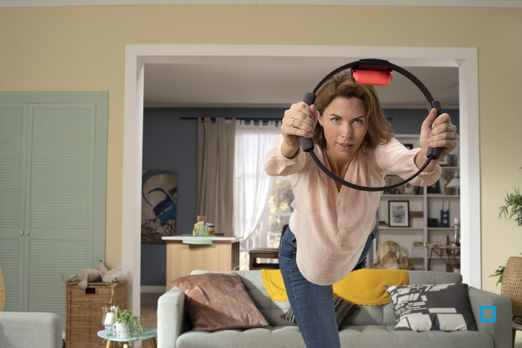 Ring Fit Adventure est un mélange d’aventure et de fitness. Le joueur utilise tout son corps pour contrôler le jeu. Pour cela, vous utilisez deux accessoires inclus dans le jeu, le Ring-Con et la sangle de jambe.