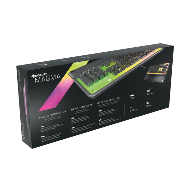 - ILLUMINATION AIMO - L'écosystème de rétroéclairage signé ROCCAT permet de connecter les appareils compatibles et d'offrir une ambiance immersive dès la sortie de l’emballage sans configuration particulière. La plaque supérieure du clavier Magma brille de ses 16,8 millions de couleurs pour offrir un spectacle AIMO époustouflant.