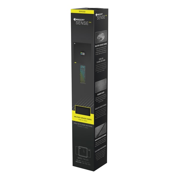 Le tapis de souris de jeu ROCCAT® Sense Pro est doté d'une surface en polyester de qualité militaire, généralement utilisé dans la confection de vêtements militaires et de vêtements de sport haut de gamme.