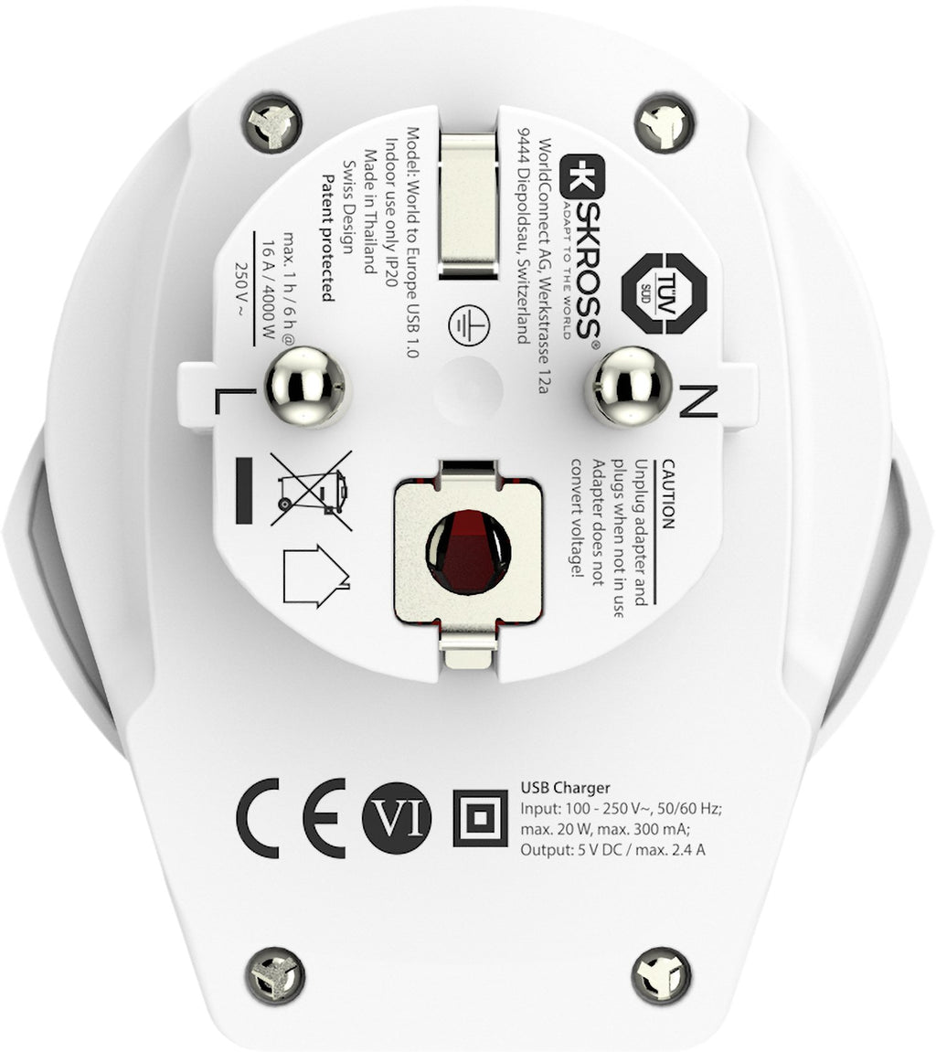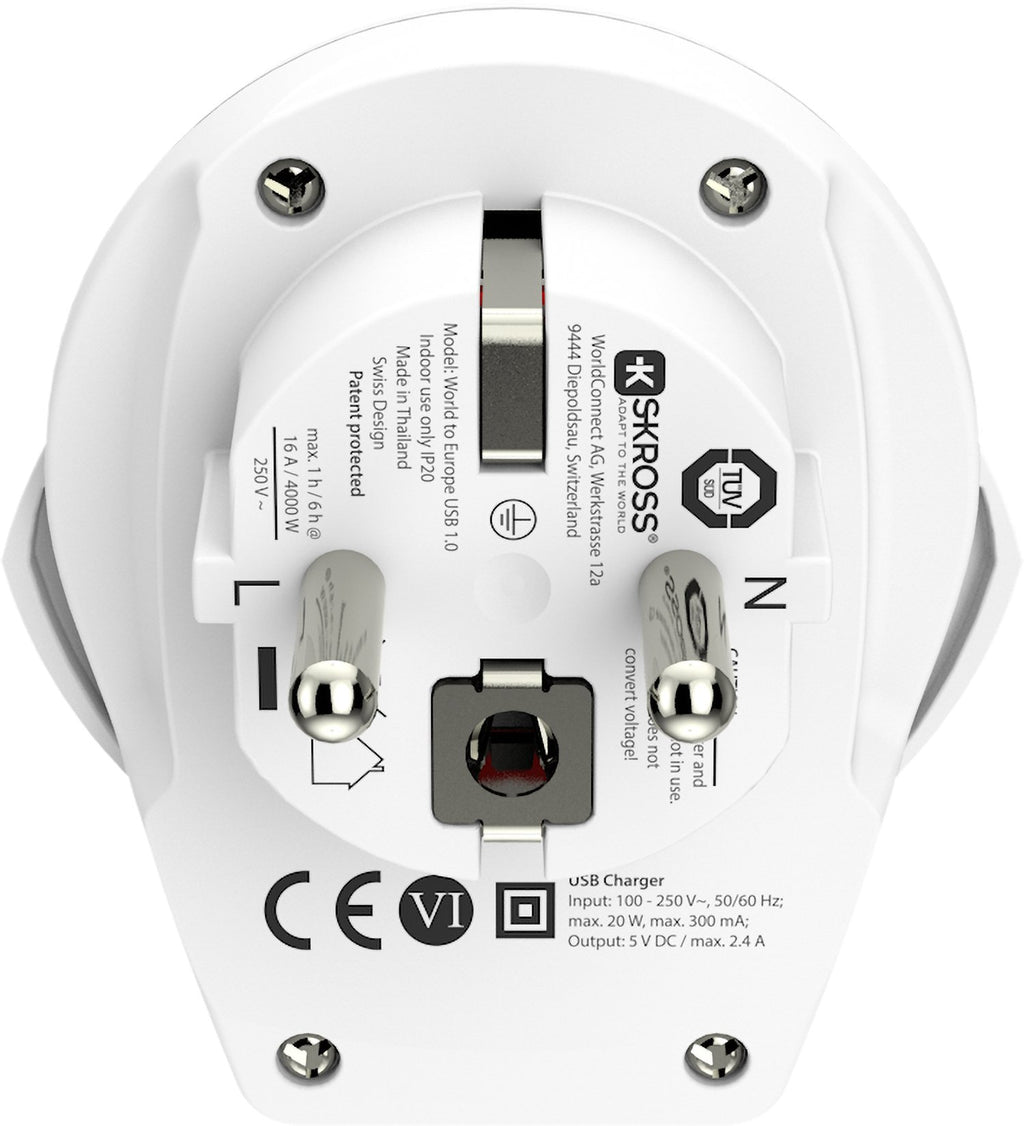 - Réceptacles pour : Suisse, Italy, Australie/Chine, Royaume-Uni, Etats-Unis/Japon et appareils USB