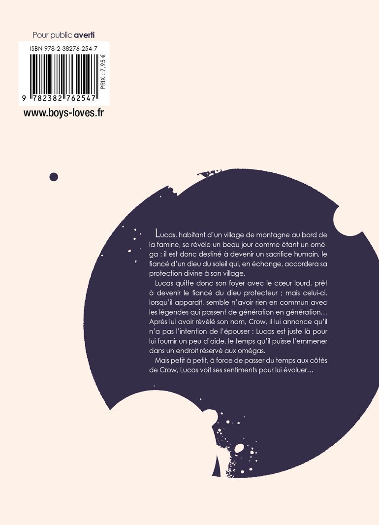 Lucas quitte donc son foyer avec le coeur lourd, prêt à devenir le fiancé du dieu protecteur , mais celui-ci, lorsqu'il apparaît, semble n'avoir rien en commun avec les légendes qui passent de génération en génération... Après lui avoir révélé son nom, Crow, il lui annonce qu'il n'a pas l'intention de l'épouser : Lucas est juste là pour lui fournir un peu d'aide, le temps qu'il puisse l'emmener dans un endroit réservé aux omégas.