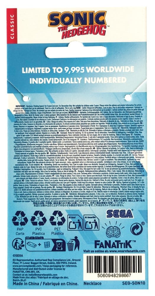 Pendentif avec collier de "Sonic - The Hedgehog". Limité à 5000 exemplaires.