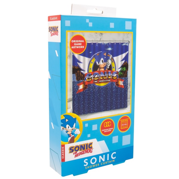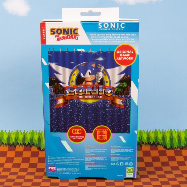 Après une longue journée de course dans la Green Hill Zone, accélérez la relaxation et terminez votre routine en un temps super Sonic grâce à ce rideau de douche. Donnez du style à votre salle de bain en un rien de temps grâce aux 12 crochets inclus. Ce rideau est orné d'une illustration originale du jeu Sonic, ce qui en fait le cadeau idéal pour tous les fans du flou bleu !